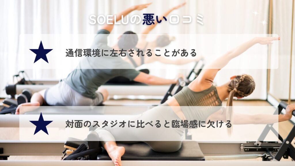オンラインフィットネスSOELUには良い口コミもある一方で、以下のような悪い口コミも見受けられました。