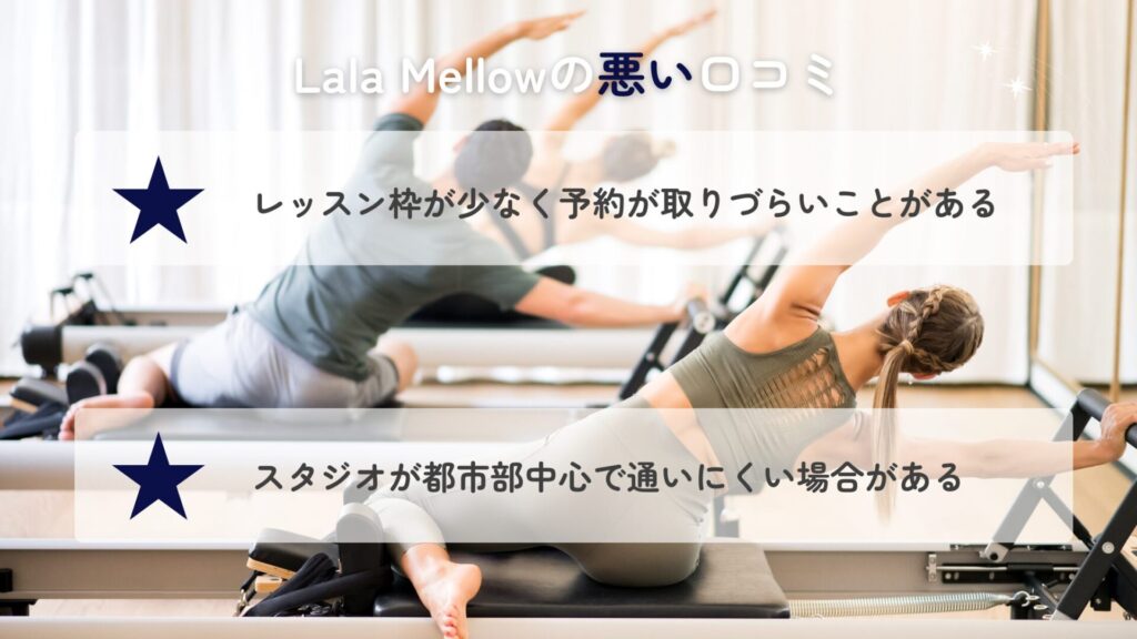 Lala Mellowは少人数制で静かな雰囲気を重視しているため、音楽に合わせて盛り上がるような大規模クラスを求める人には物足りなく感じることがあります。