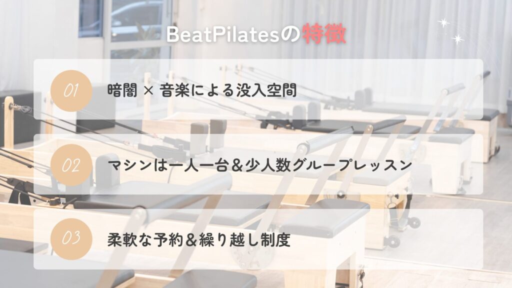 そんなBeatPilatesには、以下のような魅力的な特徴があります。