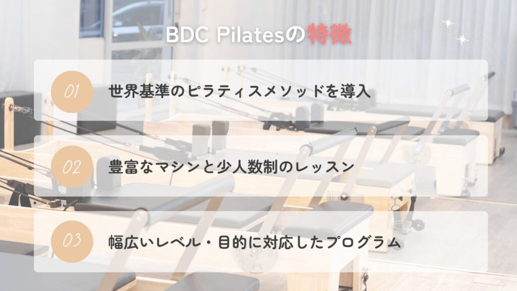そんなBDC Pilatesには、以下のような魅力的な特徴があります。
