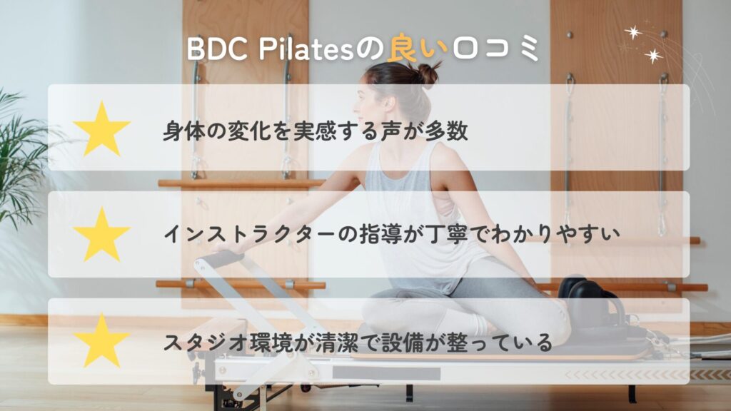BDC Pilatesにはかなり多くの良い口コミがありました。