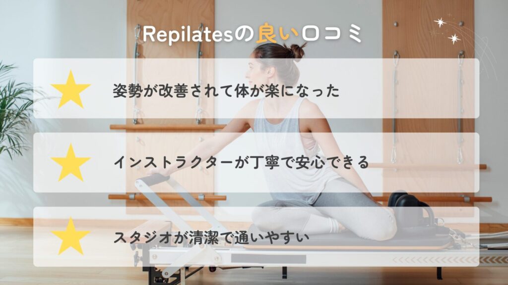 インストラクターの質はスタジオ選びの大切な基準です。Repilatesは丁寧な指導で、初心者でも安心して継続できる点が強みです。