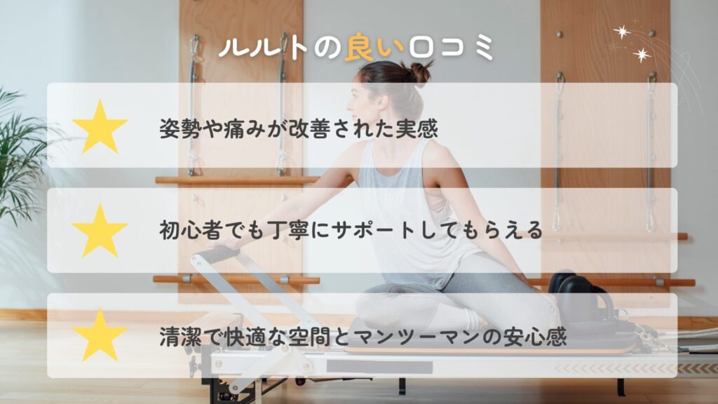総じてルルトは、「身体を根本から変えたい人」「医学的な視点に基づいた安心の指導を受けたい人」「完全マンツーマンで集中したい人」に特におすすめのスタジオです。まずは体験レッスンで、自分の身体の変化をぜひ実感してみてください。